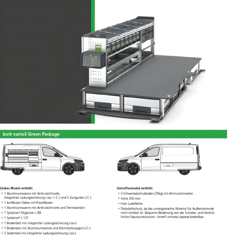 Le prix comprend le montage certifié. Après l’achat, vous serez contacté concernant le lieu et la date du montage. Si votre véhicule n’est pas encore équipé d’un plancher d’origine (en bois), un plancher bott sera nécessaire.